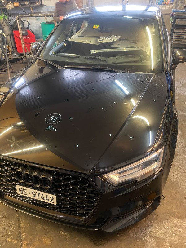 Sollte Ihr Fahrzeug bei einem Sturm oder Unwetter dem Hagelschaden zum Opfer gefallen sein, so ist Ihr Fahrzeug bei uns bestens aufgehoben. Wir klären alles mit Ihrer Versicherung und zählen alle vorhandenen Dellen. Anschliessend wird das Fahrzeug wo nötig zerlegt und mittels Drück- und Klebetechnik instand gestellt. in 95% aller Fälle bleibt dabei der Originallack unbeschädigt und bestehen.